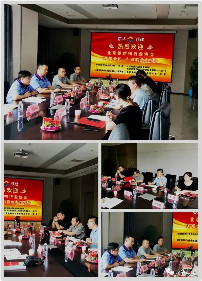 2020年725日上午,北京鋼結(jié)構(gòu)行業(yè)協(xié)會會長胡勇、北京鋼結(jié)構(gòu)行業(yè)協(xié)會秘書長常海君、北京鋼結(jié)構(gòu)行業(yè)協(xié)會常務理事(北京華龍聯(lián)合建設(shè)工程有限公司董事長)王廣飛、北京鋼結(jié)構(gòu)行業(yè)協(xié)會秘書處史君蒞臨京華兆建參觀考察。
