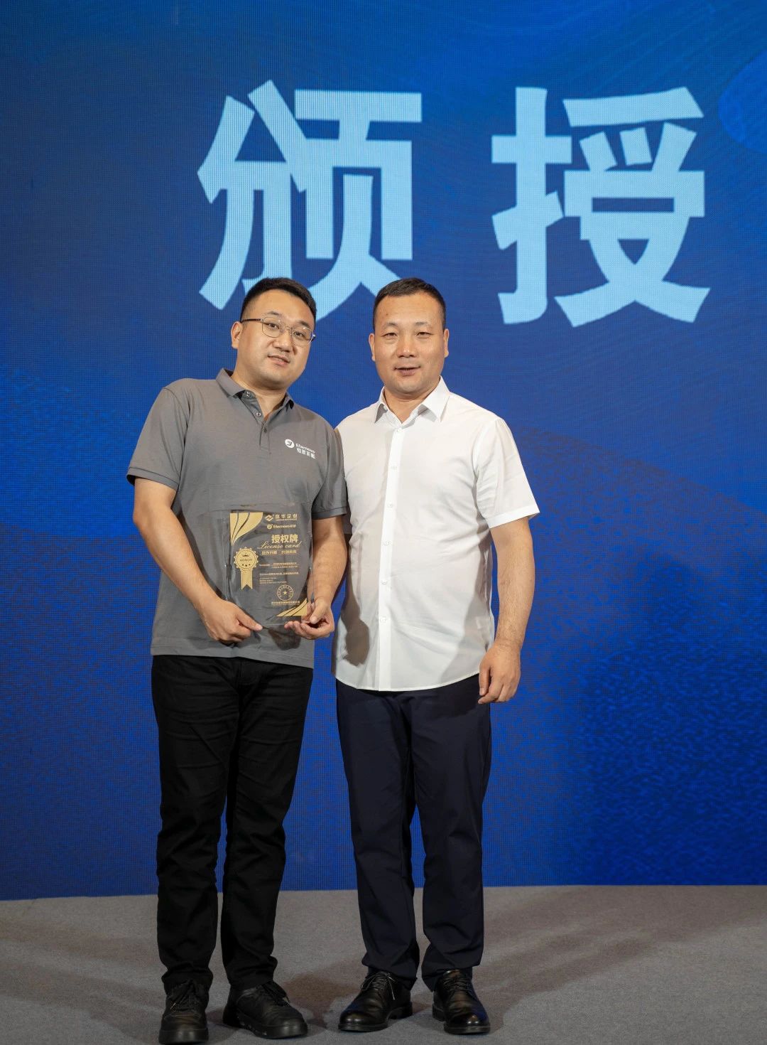 在恒新彩涂板經銷商的頒授儀式上,京華企業(yè)總經理陳鐵柱先生為新洋實業(yè)總經理齊林先生頒發(fā)授權牌,并與特邀嘉賓一同合影留念,進一步加深合作。恒新品牌的成功離不開合作伙伴的支持和努力,而頒授儀式則是向他們致以最真摯的感謝和祝福的重要時刻。